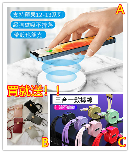斜跨手機包+三合一數據線+無線電充!【贈品有顏色要求的下單請備註】