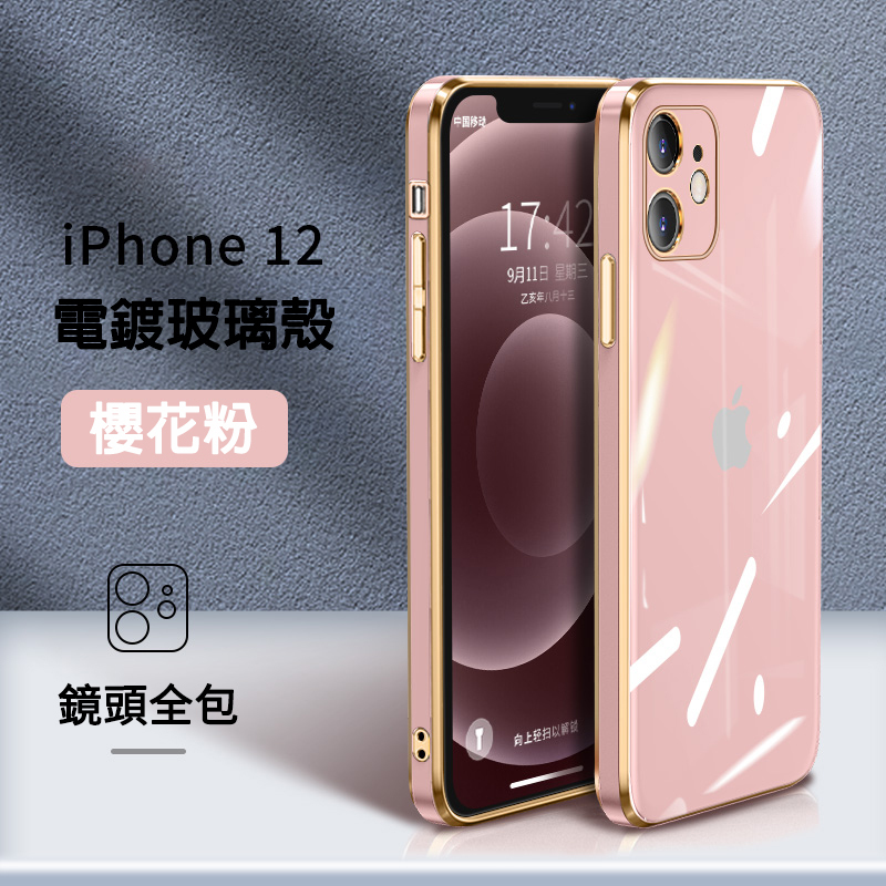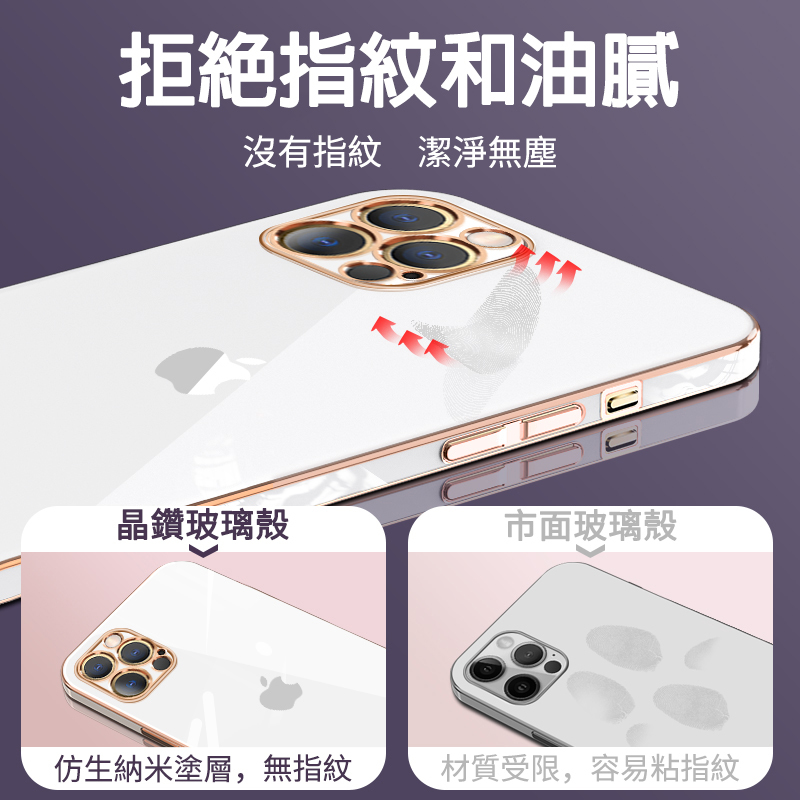 【電鍍玻璃殼】純色電鍍晶鑽玻璃iPhone保護殼